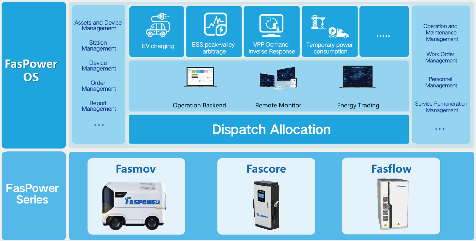At present, most of the mobile charging robots in the industry only provide charging services for new energy vehicles. Fasmov mobile charging and energy storage station provides a systematic solution. In addition to mobile charging, it can also provide convenient energy storage services. At the same time, there are a series of value-added services such as advertising, inspection, virtual power plants, car washing, power dedicated lines, and temporary power usage. It provides safe and efficient integrated energy storage and charging solutions for industrial and commercial users such as commercial real estate, property parks, charging operators, and parking lot operators. It helps users achieve various scenario applications such as peak shaving and valley filling of electricity, reduction of power demand, dynamic capacity expansion, virtual power plants, charging of new energy vehicles, and sharing of charging infrastructure, significantly improving the overall economic benefits of enterprises and operators.
