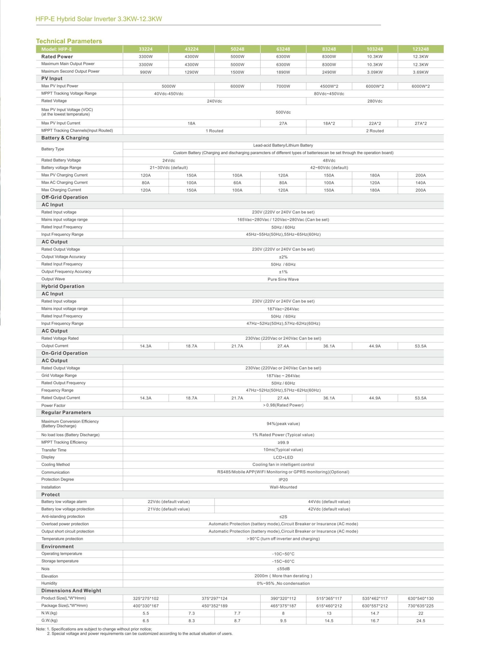 HFP-E Series Hybrid Solar Inverter 3.3KW-12.3KW