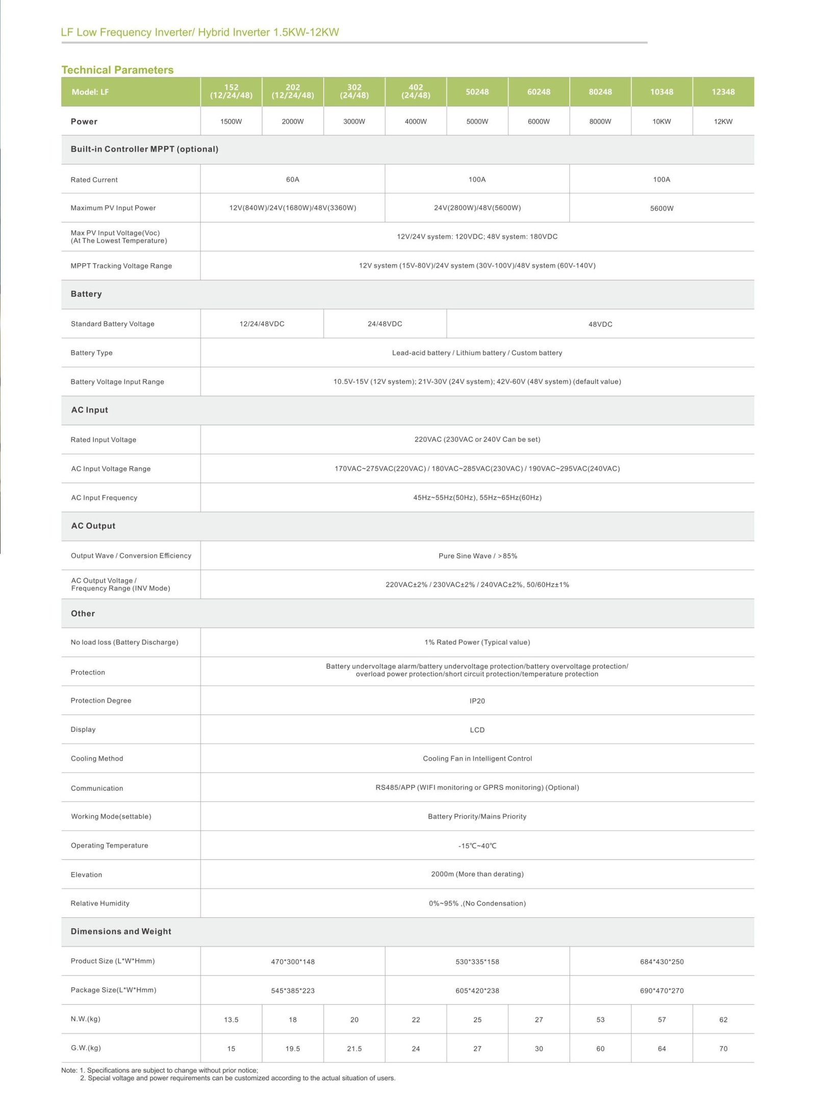 LF Series Low Frequency Solar Inverter 1.5KW-12KW