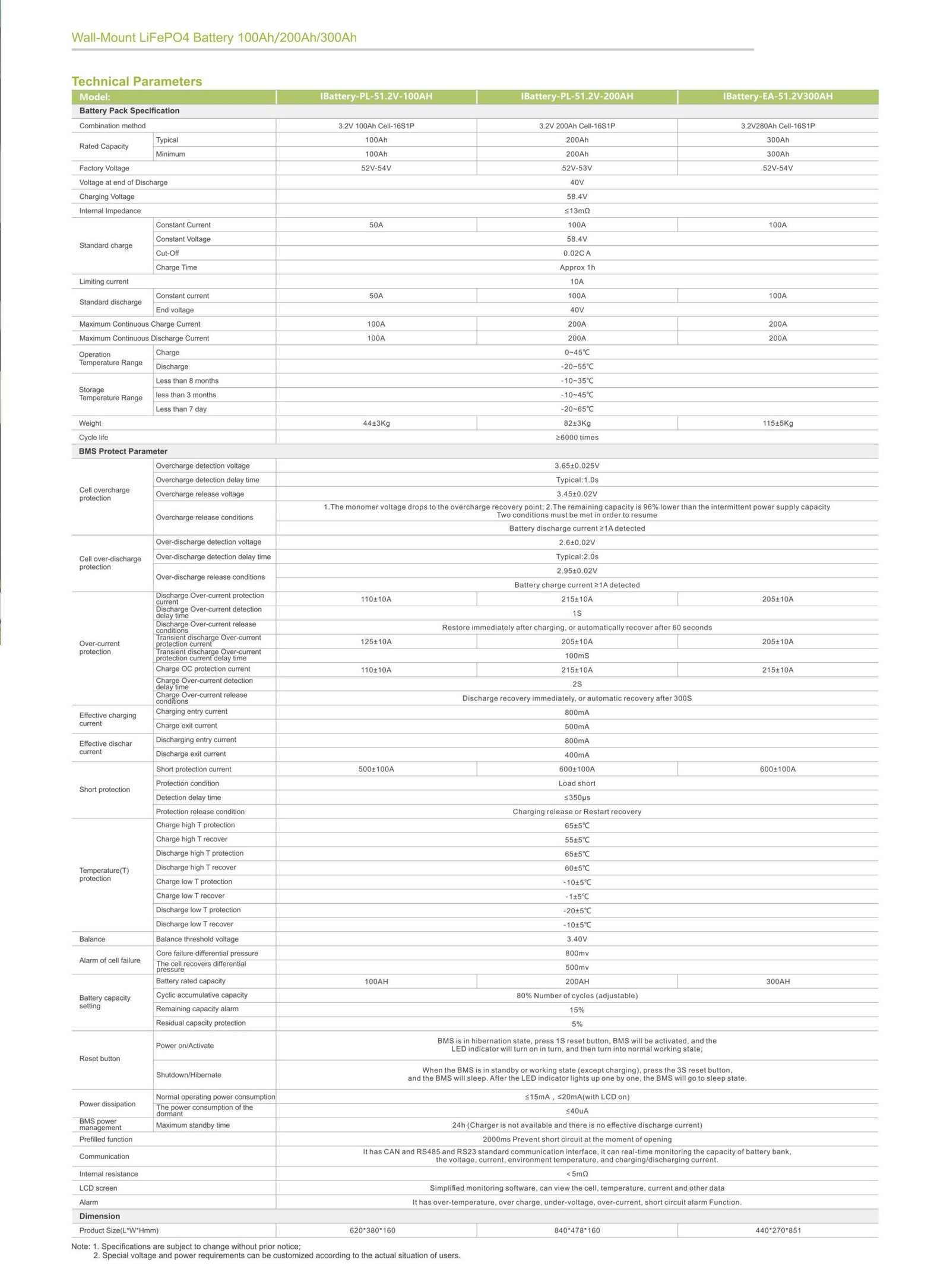 Wall-Mounted LiFePO4 Battery Pack 51.2V 100Ah-300Ah